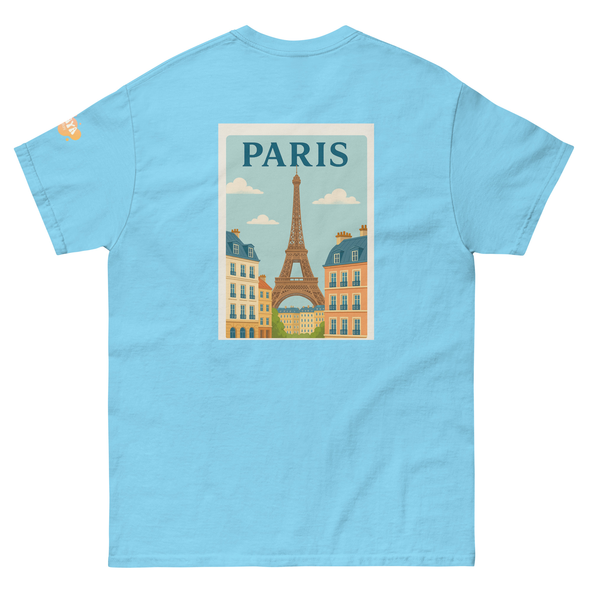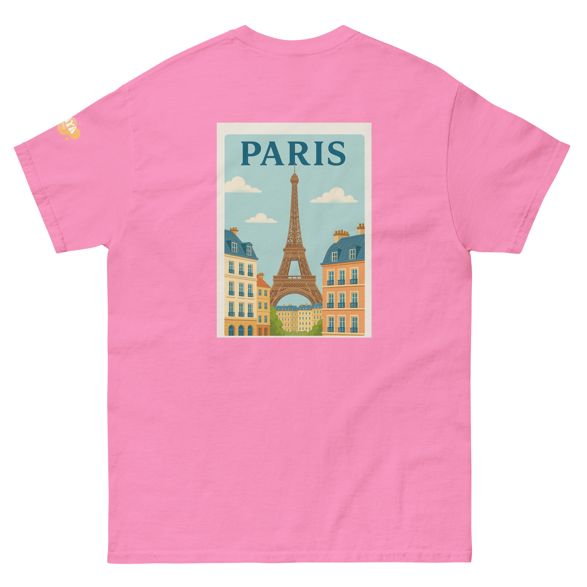 Embarquez pour Paris avec ce T-shirt unisexe au visuel pastel, imprimé dans le dos. Un clin d’œil élégant à la capitale de l’amour, parfait pour les journées d’été, les apéros en terrasse ou vos balades stylées.